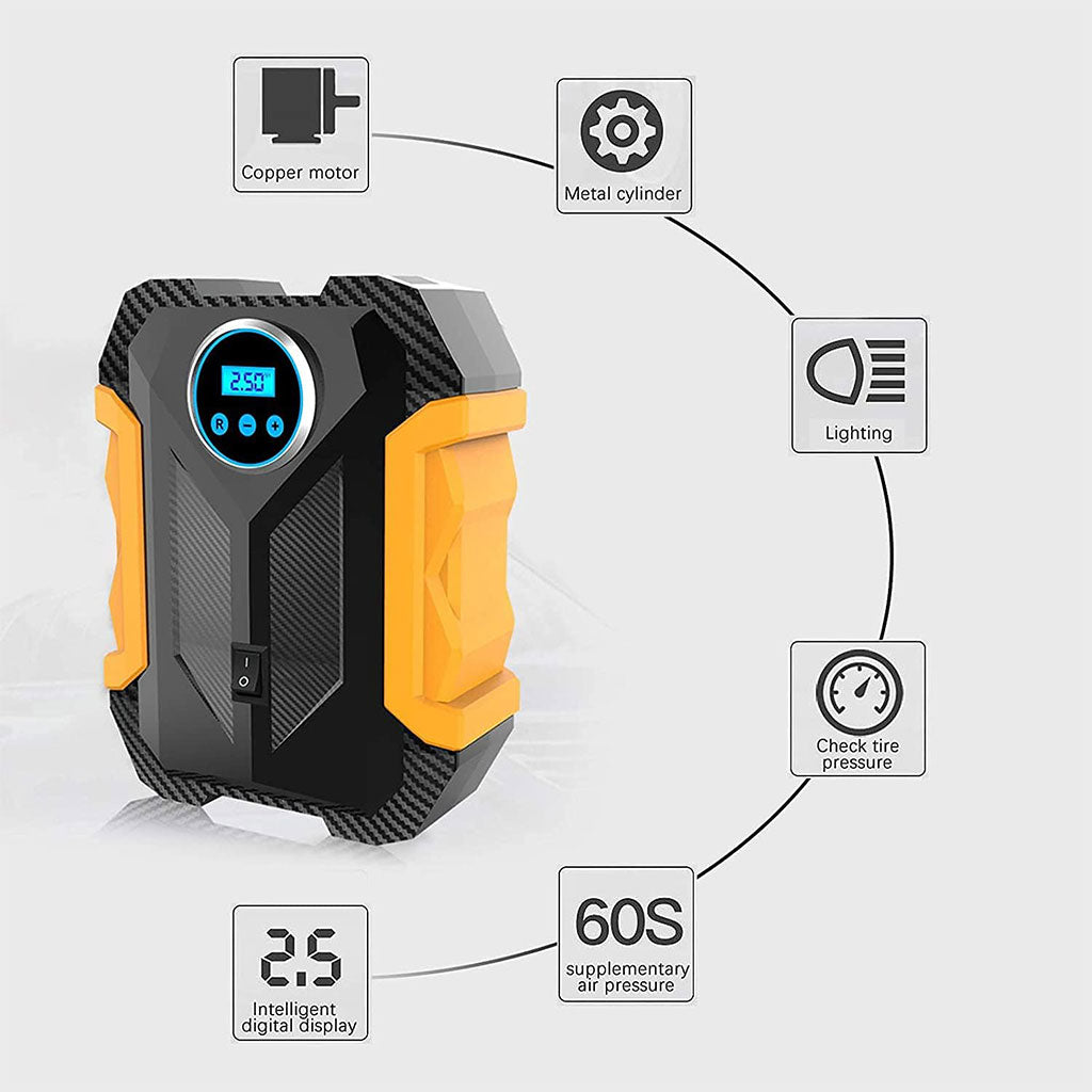 - 💪 ضغط قوي حتى 150 PSI: ينفخ إطار 195/65/R15 من 0 إلى 35 PSI في أقل من 5 دقائق.